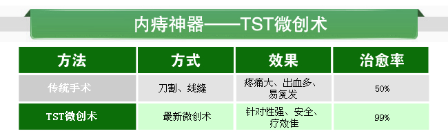 1、女性痔疮专业的治疗方法-TST术:武汉博仕中医肛肠医院的专家表示TST术是建立在肛垫学说基础上,运用吻合器治疗环状脱垂痔的新技术,专门用于治疗ⅱ-ⅳ度重痔、不破坏肛垫正常生理功能且显着缩短手术时间并极大减轻术后疼痛的痔吻合术。>>>您的病情适合采用TST微创治疗吗?