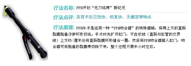 pph技术治疗痔疮、安全,一般手术过程在20-30分钟左右,术后由于创伤小,出血少,仅需要留院观察1-2小时就可以离开了,24小时可以恢复肛门正常功能,约一周左右能有效恢复。