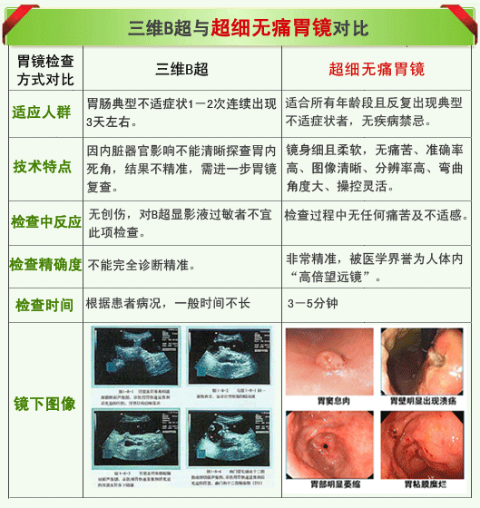 三维立体超声检查,不插管不下镜,,可以对胃肠和全身多个重要脏器做出明确的诊断,而且诊断胃肠病变的率很高,因为胃镜和肠镜有很多禁忌症.比如说像心脏病病人、老年人、儿童和传染病病人,就不能做胃镜和肠镜的检查,而三维立体胃肠超声诊断系统适合各类人群.能的检查出全身各个脏器几毫米大小的病变,这些都是在彩色的大屏幕上放大了上千倍以后观测到的,以至于不会错过了对胃肠道疾病早期诊断与治疗的专业时机.为患有肛肠疾病的朋友开辟了更为人性化检测与治疗的新途径,给患者带来健康的福音!