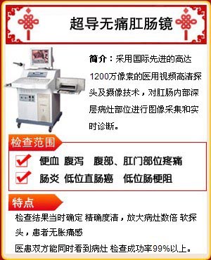 武汉博仕中医肛肠医院采用博仕超导肛肠镜检查,其医用视频及摄像技术打破了传统肛肠指诊检查的弊端,可对肛肠内部深层病灶部位进行图像采集、实时诊断,医患双方在检查过程中可同时清晰的观察到放大数十倍的病灶部位,避免误诊、误治,从而为临床治疗提供依据。同时可将病灶锁定后打印成像,为治疗前后进行比较提供依据。 >>>>>博仕肛肠镜检查需要多长时间?检查的详情?