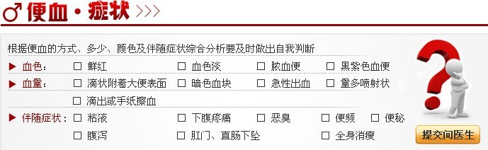 专家指出,便血是消化道出血经肠道排出后,粪便带血或全血便,颜色可以是鲜红色、暗红色和柏油样。血便的颜色取决于出血的位置、出血量和血液在消化道停留的时间。下消化道(小肠、结肠、直肠、肛门)出血,大便常呈鲜红色或暗红色。上消化道(食道、胃、十二指肠)出血,大便往往呈柏油样。 >>>>>我的便血是怎么回事?便血症状与疾病的对比图。