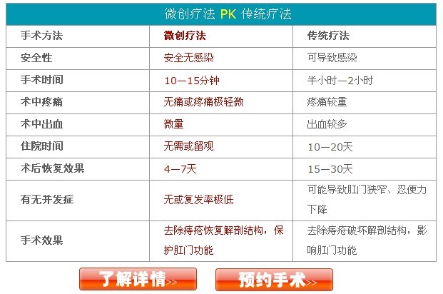 (2)技术优势:1.创面小、出血少、、不碳化、不结痂、无异味、血管闭合好、、、。2.手术,每枚痔核只须3—5秒即可干结凝固。