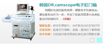 针对肛门、直肠下段检查。采用医用视频及数字摄像技术,医患双方在检查过程中可同时清晰的观察到放大数十倍的病灶部位。根据病情选择治疗方案。同时可将病灶锁定后打印成像,为治疗前后进行比较提供依据。