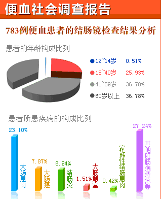 大便出血,是众多肛肠疾病共有的症状。痔疮、肛裂所致的大便出血,血色鲜红,有带血、滴血或射血几种症状。肛裂出血常伴有肛门疼痛。结直肠肿瘤也大便出血,但常见血色暗红、紫红或伴有粘液,很少有滴血、射血症状。