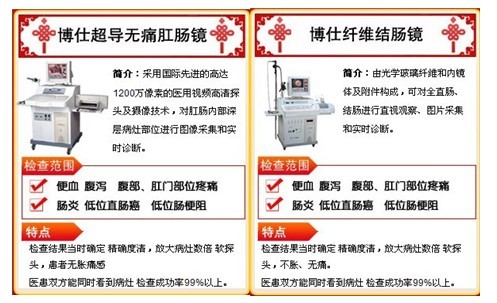 利用科学专业的仪器和设备进行检查,检查,仅需3-5分钟,但诊断率却高达以上,有效的避免了误诊、漏诊,是目前国际上肛肠病检查诊断的尖端设备。