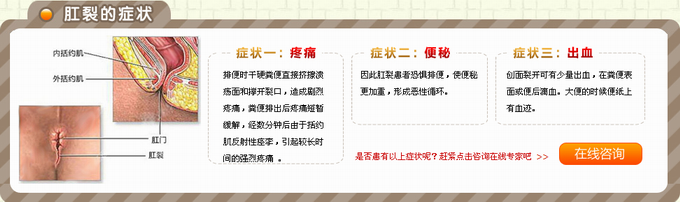 疼痛:呈周期性,排便时疼痛加剧,呈阵发性刀割样疼痛或灼痛,排便后数分钟到十余分钟内疼痛减轻或消失,称为疼痛间歇期。随后又因括约肌持续性痉挛而剧烈疼痛,往往持续数小时方能逐渐缓解。疼痛也是临床上多数患者就诊的主要原因。