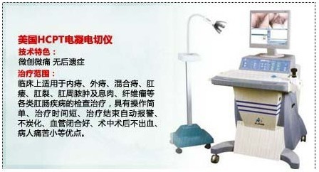 武汉博仕中医肛肠医院采用进口专利HCPT技术,在电脑程序控制下,测温释放热能,微创、高频止血、不伤其他组织,切除痔上直肠黏膜,使肛垫组织复位。同时切断痔上黏膜及黏膜下的血管,减少痔块血供,使其萎缩,达到治疗目的。对内痔、外痔、混合痔均可一次治疗。HCPT微创手术的被医学界誉为痔疮治疗史上划时代的手术方式。