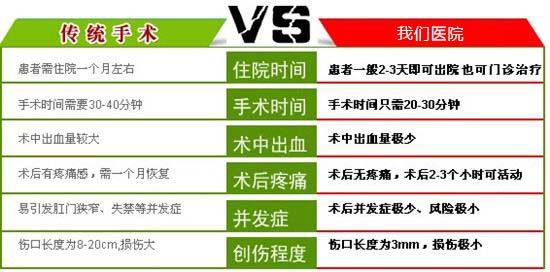 优势:一次性治疗,清除病灶,有效地避免诸多并发症和严重后遗症。对内痔、外痔、混合痔等肛肠疾病,尤其适用内痔(伴大便出血)和混合痔以内痔为主的病人有非常好的疗效。