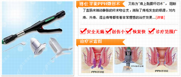 PPH微创技术:一次性使用肛痔吻合器适用于肛管内直肠粘膜脱垂或痔膜组织钉合修复,用于Ⅲ、Ⅳ度内痔的治疗。治疗混合痔疮具有的技术优势有: