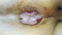 属于外痔的一种,常由肛缘皮肤损伤和感染引起,多有肛门疼痛,在排便时疼痛加重,便血,肛门部有少量分泌物。局部检查肛旁隆起的肿物,色红,充血明显,有触痛,有时可伴有全身不适和发热。