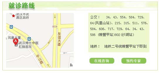 武汉博仕中医肛肠医院全力为江城人们的肛肠健康服务,为了肛肠镜检查为更多的市民服务,特开设有专门的网上预约服务,只要您通过网络预约了武汉博仕中医肛肠医院的肛肠镜检查,就可以以52元享受原价325元人民币的全套肛肠镜检查服务。