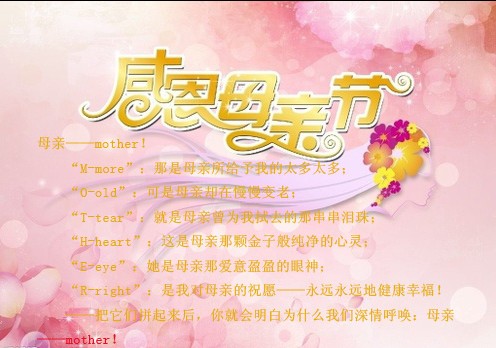 母亲节就要到了,我很想给送妈妈一件特别的礼物,送一束鲜花,一顿佳肴,一套衣服,还是一张片?好像这些都不足以让我表达我对老妈的诚意。特别的日子,我要送一份特别的礼物给老妈。